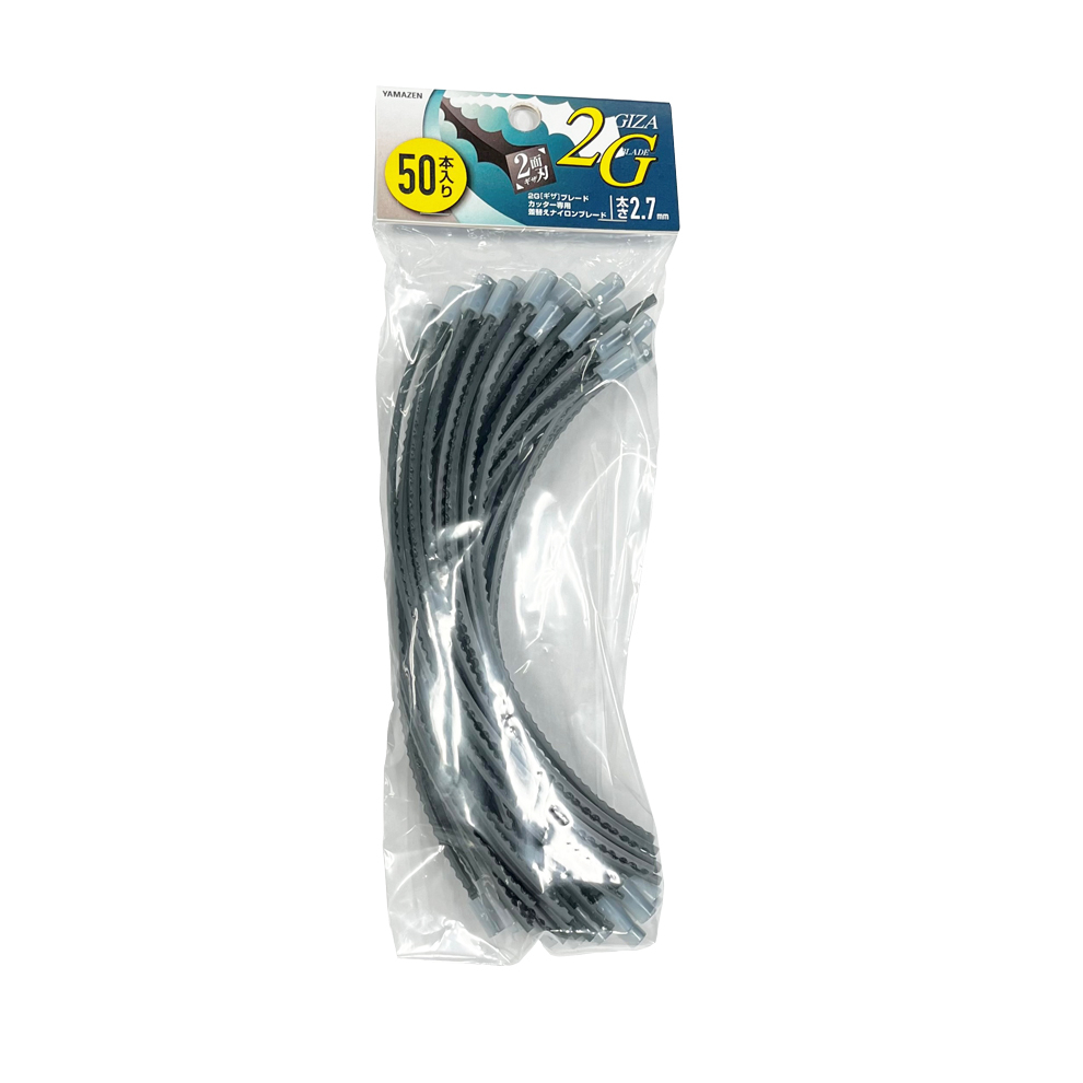 | 商品説明 | ●太さ2.7mm 50本入り ●2面ギザ刃で硬い草も破断 ●ノコギリ状の刃型で高い切れ味 ●初秋の硬くなる草でも切れ味発揮 ●ナイロン材料からコード成型、せん断加工など一貫した純国産 ●排気量25cc以上推奨 ●2GギザブレードSSC-2G専用 |