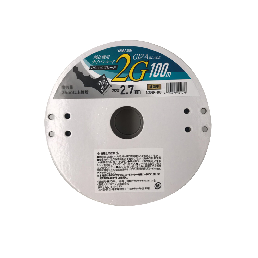 | 商品説明 | ●太さ2.7mm 100m ●ナイロン材料からコード成型、せん断加工など一貫した純国産 ●柔軟性に優れ、カッターヘッドに巻きやすい ●ノコギリ状の歯形状で高い切れ味 ●初秋の硬くなる草でも切れ味発揮 ●排気量25cc以上推奨 |