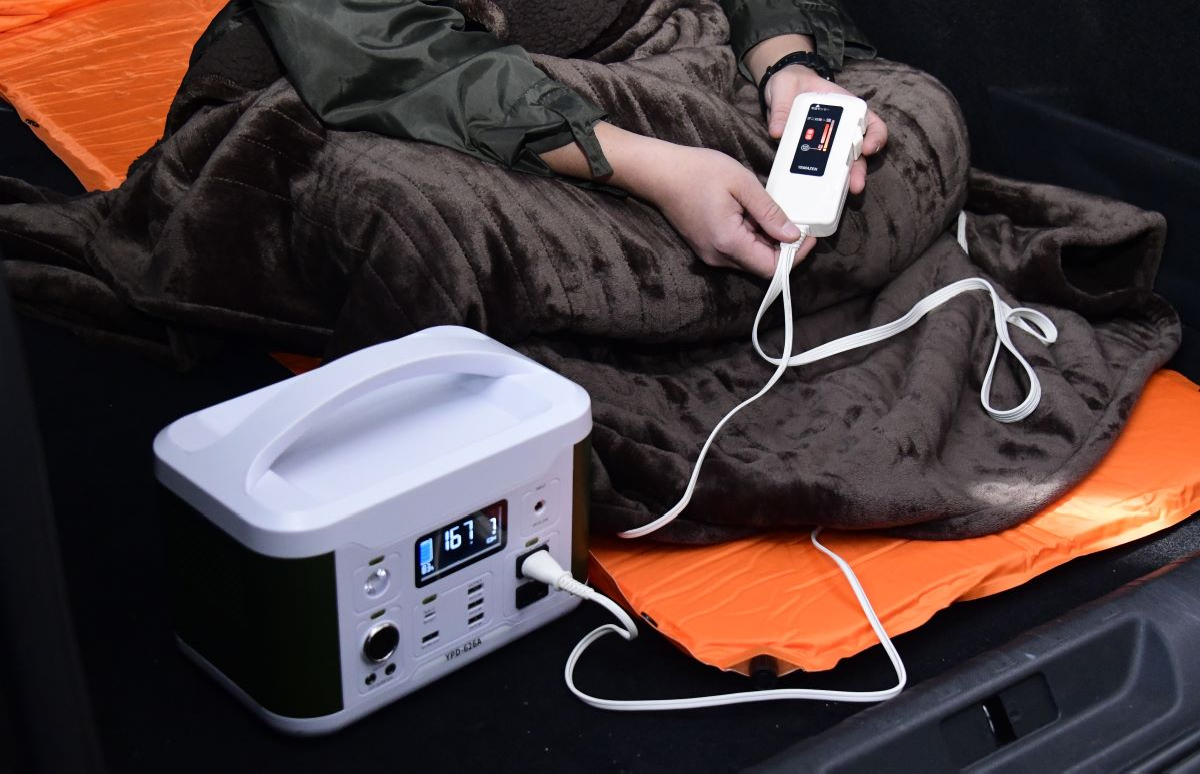 アウトドアや車中泊、災害時に活躍するコンパクトなポータブル電源です。