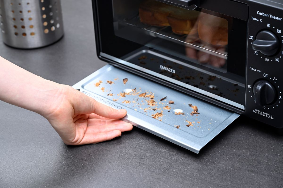 引き出し式のパンくずトレイ付き。パンくずトレイは丸洗い可能なので、お手入れも簡単です。