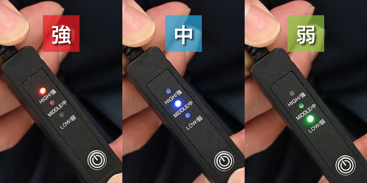 ペルチェプレートとファンのスイッチは独立しており、どちらも強・中・弱の3段階で設定可能です。