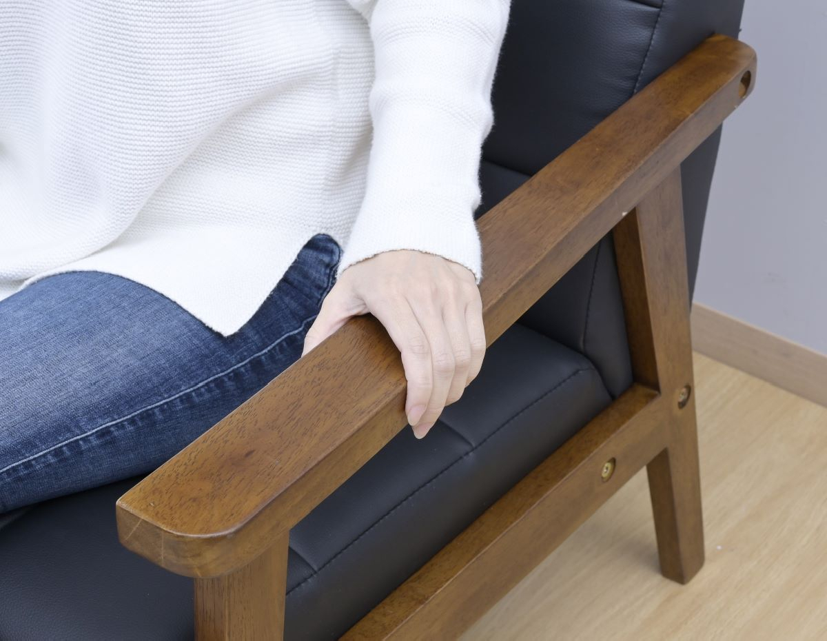 | 材質 | フレーム: 天然木 張り地: 合成皮革 中材:ウレタンフォーム、鋼製ばね |