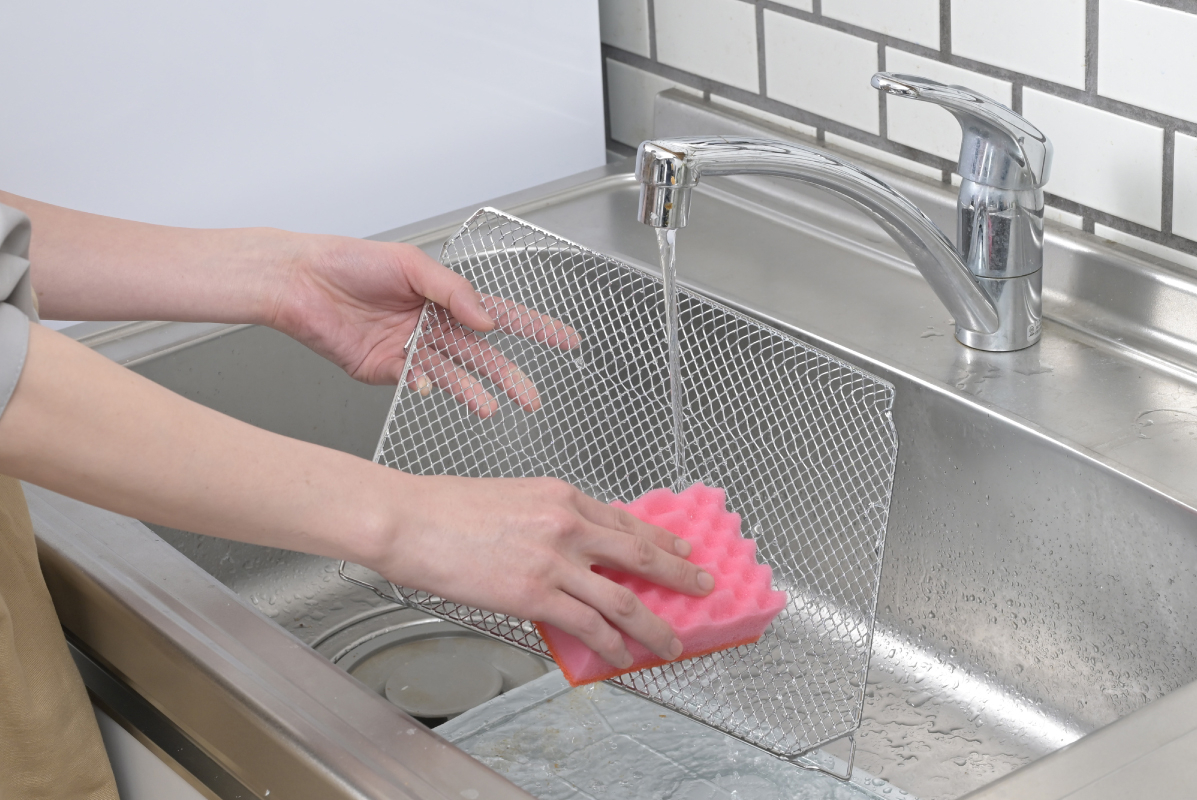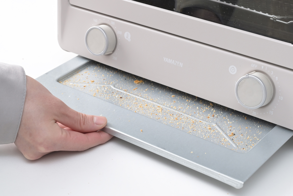 焼き網、受け皿、スチームカップ、スチームカップ置台、パンくずトレイは水で丸洗いできます。