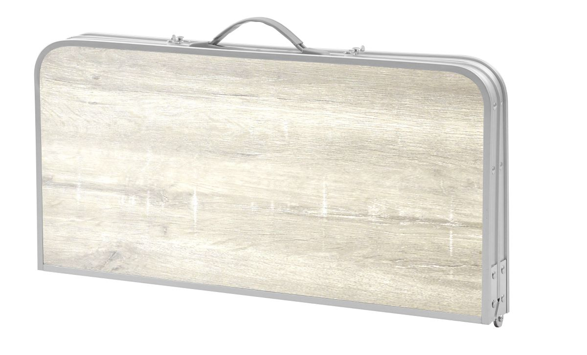 ヴィンテージ感のあるホワイトウッド調の天板です。高さは2段階に調整できます。