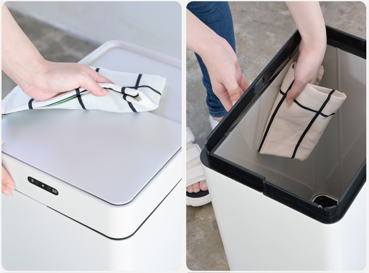 | 仕様 | 気になる匂いを軽減する、フタ付きのゴミ箱 ●手ぶらでフタを開け閉めできる、センサー式自動開閉式 ●開閉の場所を取らない、前後スライド式のフタ ●フタの開閉はボタン操作も可能 ●開いた後、約6秒で自動的にフタが閉鎖 ●電源はアルカリ単三電池6本【別売り、付属なし】、開閉数約7,000回目安 ●センサーのON・OFFは手動スイッチで切り替えも可能 ●センサー対応距離、およそ10/20/30cm、角度nn度 ●空間を無駄にしない角型デザイン ●インテリアになじむシンプルな配色 ●容量は42リットル、45Lのゴミ袋推奨・間口の縁に引っ掛けて設置(※30Lゴミ袋は設置できません) ●内側も凹凸が少なく、拭き掃除しやすいつくり ●フタ間口サイズ: 21×13cm ●最大内寸: 幅20.5 奥行31 深さ52.5cm |