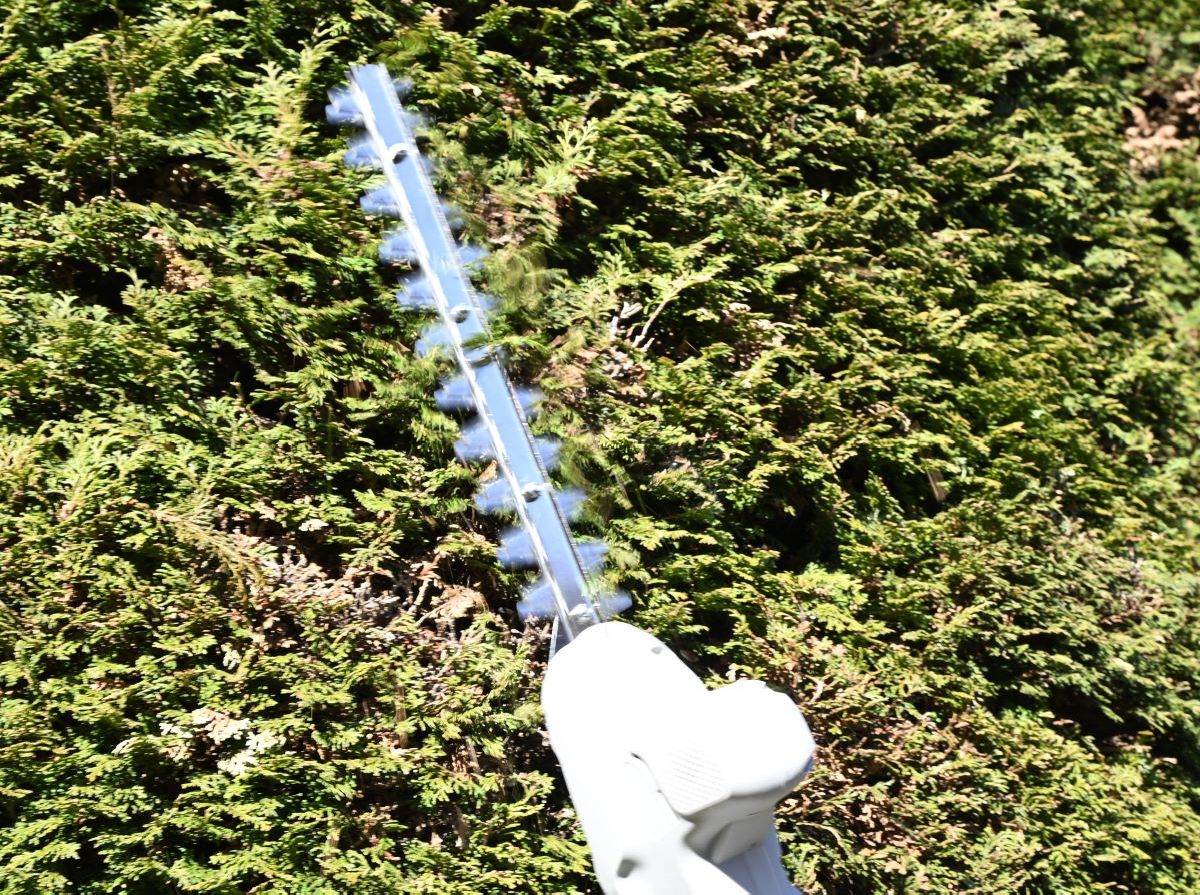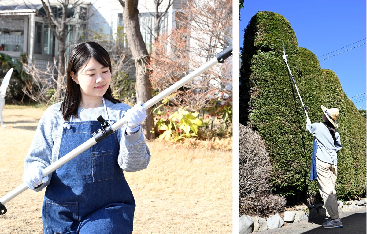 18Vリチウムイオンバッテリーで稼働する「YAMAZEN POWER TOOLS」シリーズのポールヘッジトリマー。