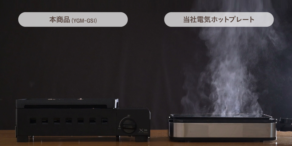 プレートの裏面を立体的な“X”の形状にした独自の“Xカット構造”で、油を効率的に下へ落とし、焼き肉の際に出る煙を抑えます。煙を約55%(※)カットするため、お部屋の煙を気にせずご自宅での焼き肉を満喫できます。