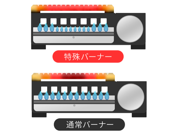特殊バーナー&プレート設計で均一なプレート温度