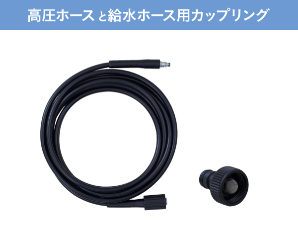 付属品には、トリガーガン、ランスと噴射ノズル、高圧ホースと給水ホース用カップリングが含まれます。