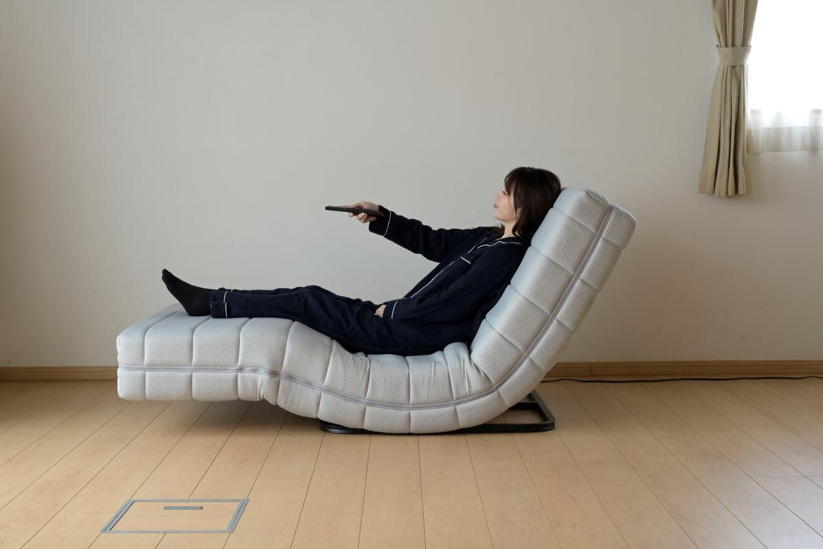2モーターだから、背面のみリクライニングしたり、背面と脚を同時にリクライニングしたり、脚だけリクライニングさせることも出来ます。お好みの角度を記憶させるメモリー機能や、ワンタッチで水平に戻すフラット機能もあります。