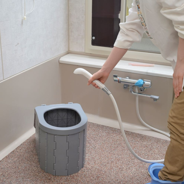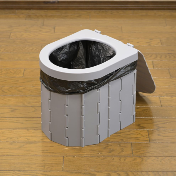 便器は折りたたんでコンパクトに。収納バッグ付きで持ち運びにも便利。