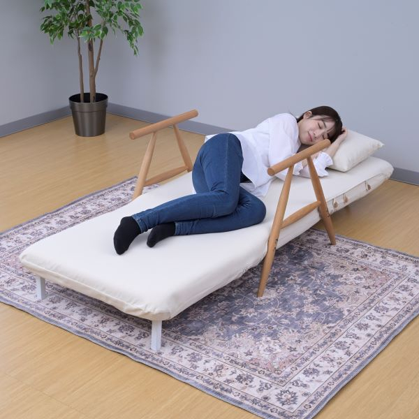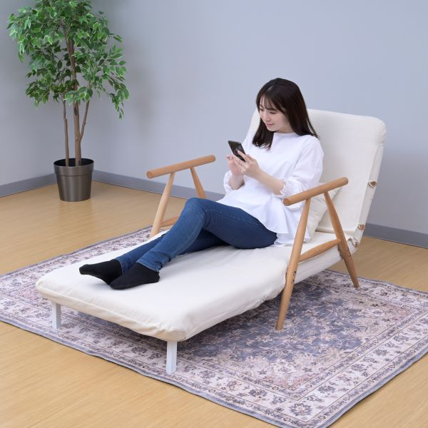ひとり掛けのソファとしてはもちろん、座部を前に引き出せば、カウチソファやセミシングルショートのデイベッドにもなります。