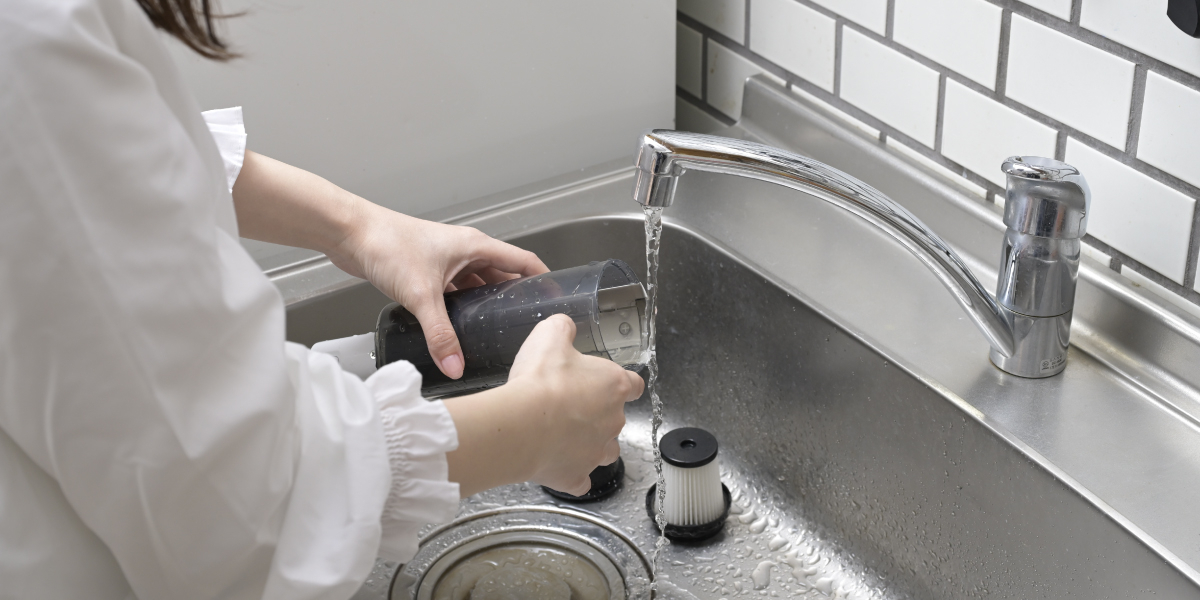 フィルターとダストカップは簡単に取り外して水洗いが可能です。