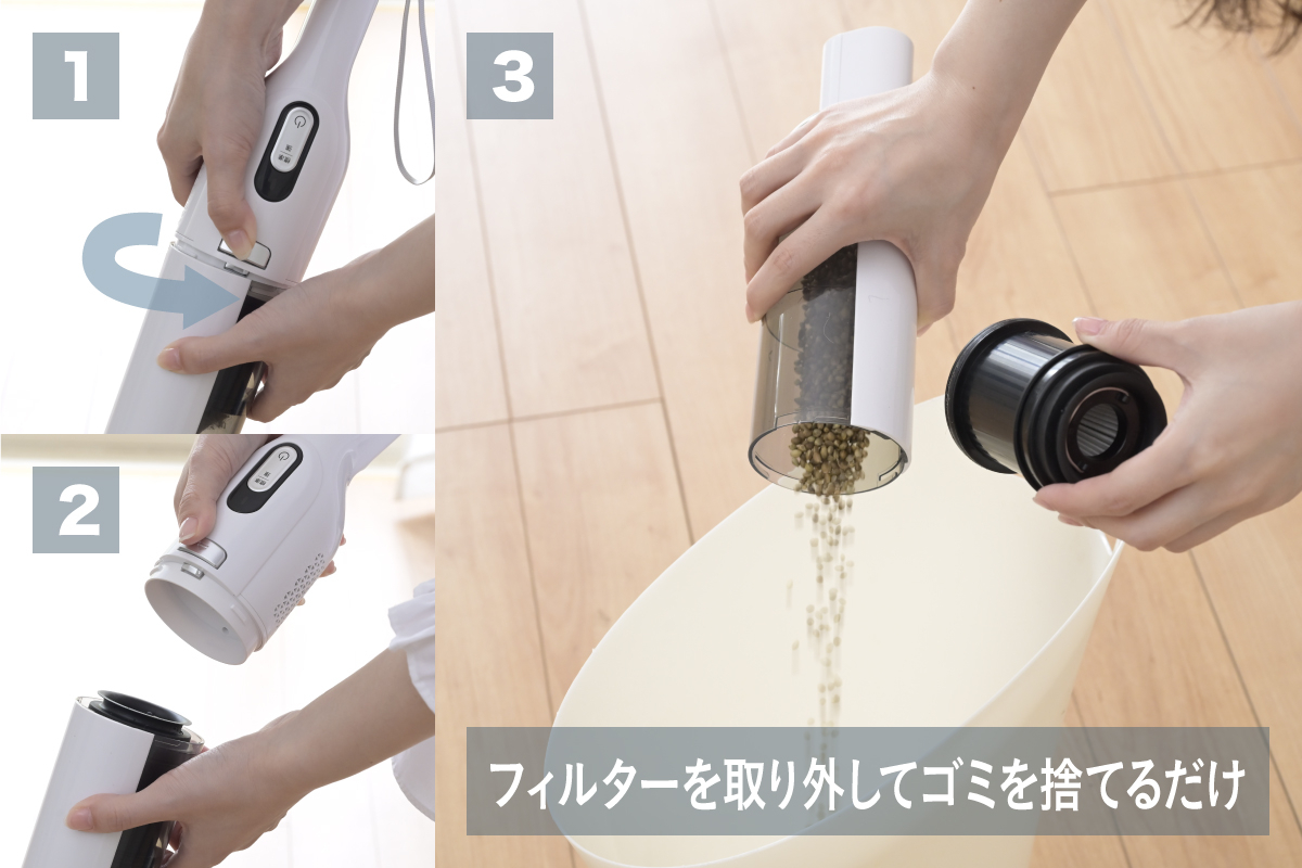 ゴミは、本体からダストカップを取りはずして捨てるだけ。