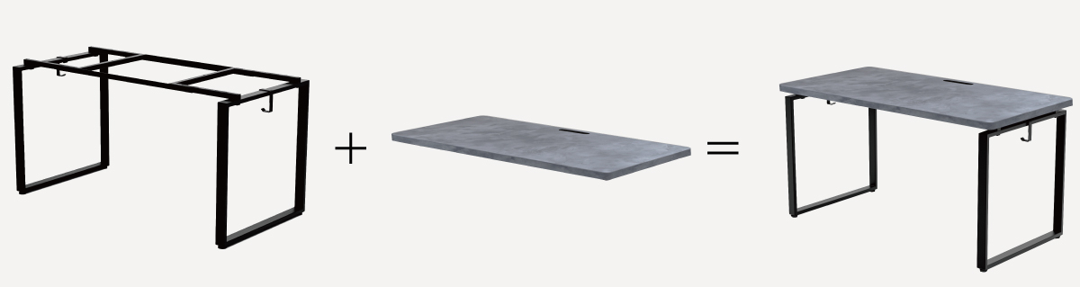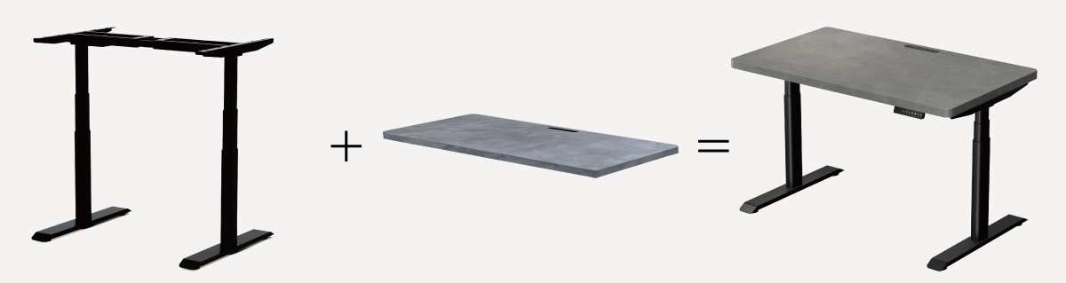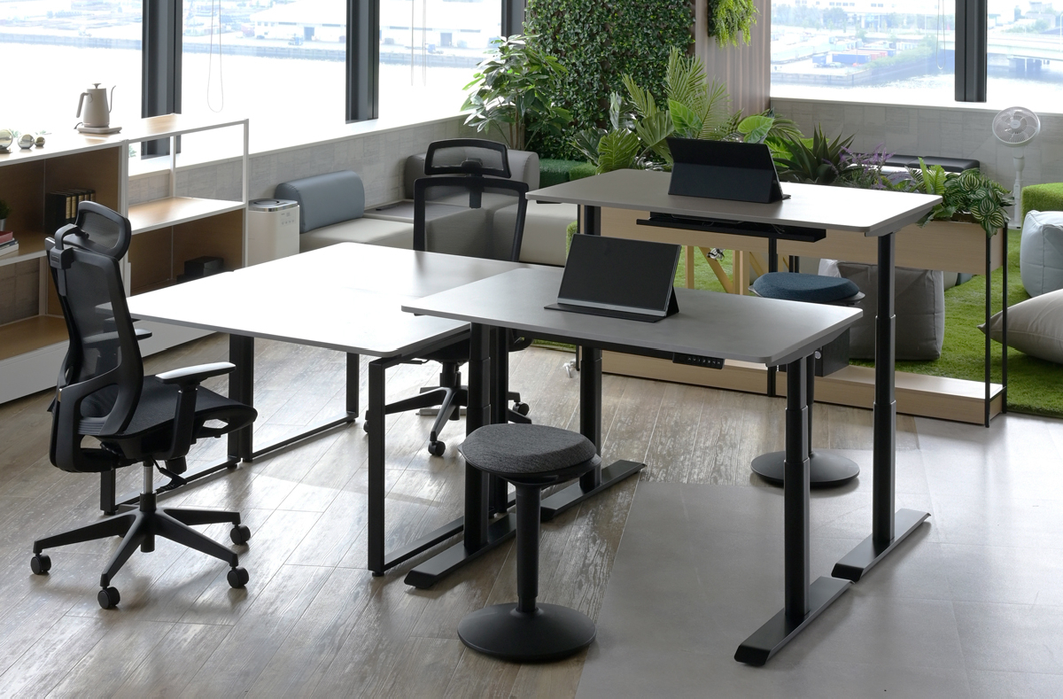豊富な電動昇降デスクの天板から組み合わせられます。天板はそのままで脚だけ変えて、電動昇降デスクにアップグレードすることも可能です。