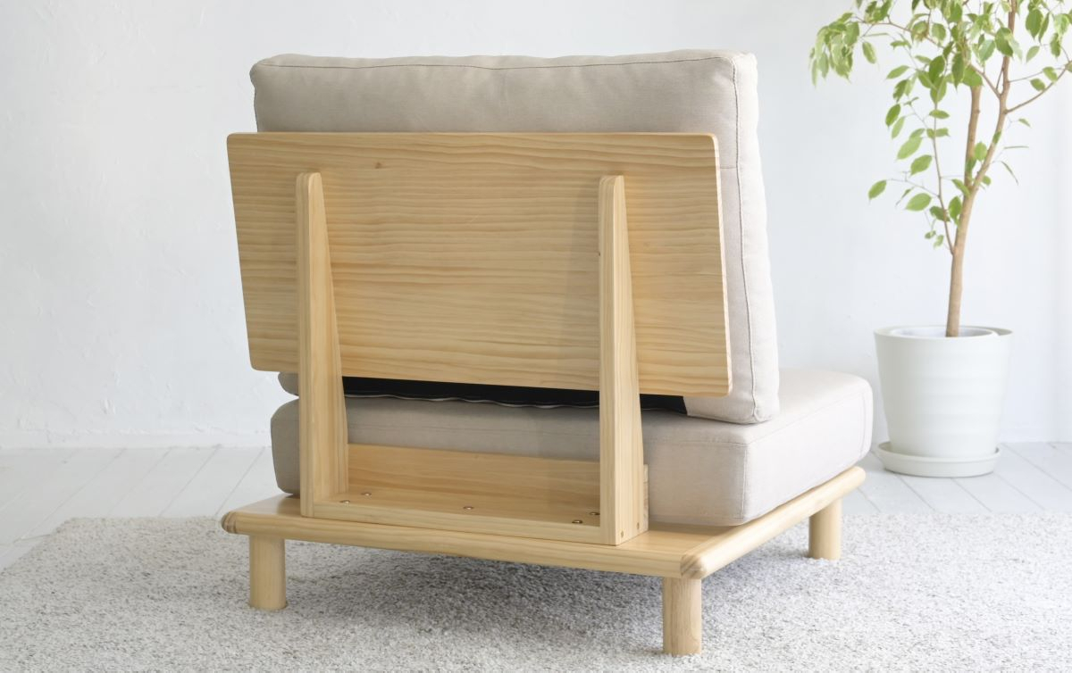 背面に見えるフレームも木のやさしいぬくもりを感じて頂けます。
