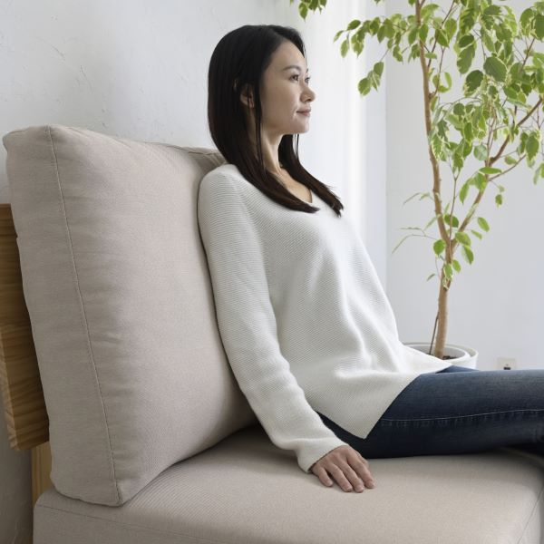 背もたれのクッションにはポリエステル綿がぎっしり♪ 奥行もゆったりなので、あぐらもかけます。