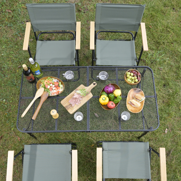| 仕様 | ●水や熱に強い次世代のタフなテーブル ●高さ調節スムーズなスライド脚部 ●天板は手入れしやすい金属製メッシュでダッチオーブンやバーベキューコンロをそのままのせられます ●軽量で移動時や収納時作業も簡単 ●ファミリーやパーティーに適した120×60cmタイプ ●高さ3段階調節 ●天板総耐荷重:40kg |