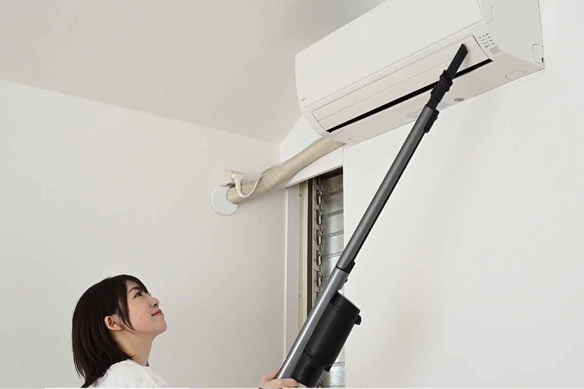 紙パック式のコードレススティッククリーナーとして、業界最軽量(※)の約1.0kgを実現しました。片手でも持てるので、エアコンなどの天井まわりの掃除にも活用いただけます。