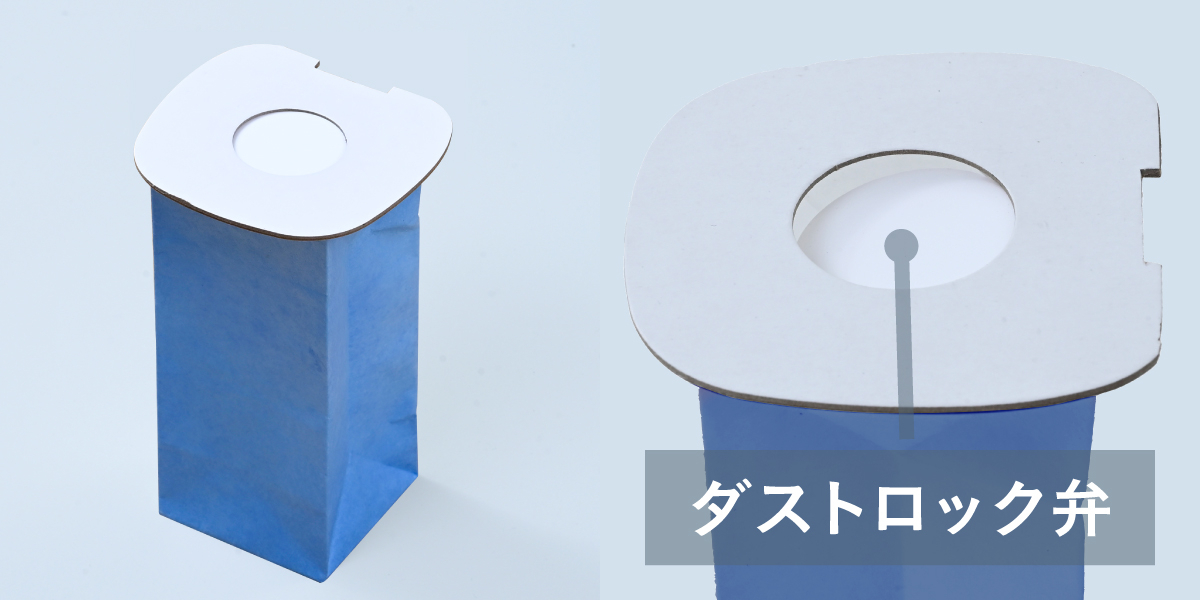 紙パック内部には、逆流を防ぐダストロック弁を搭載しています。運転停止時や持ち運び時に発生しやすいゴミの逆流・ゴミを捨てる際のホコリの舞い上がりをしっかりブロックします。