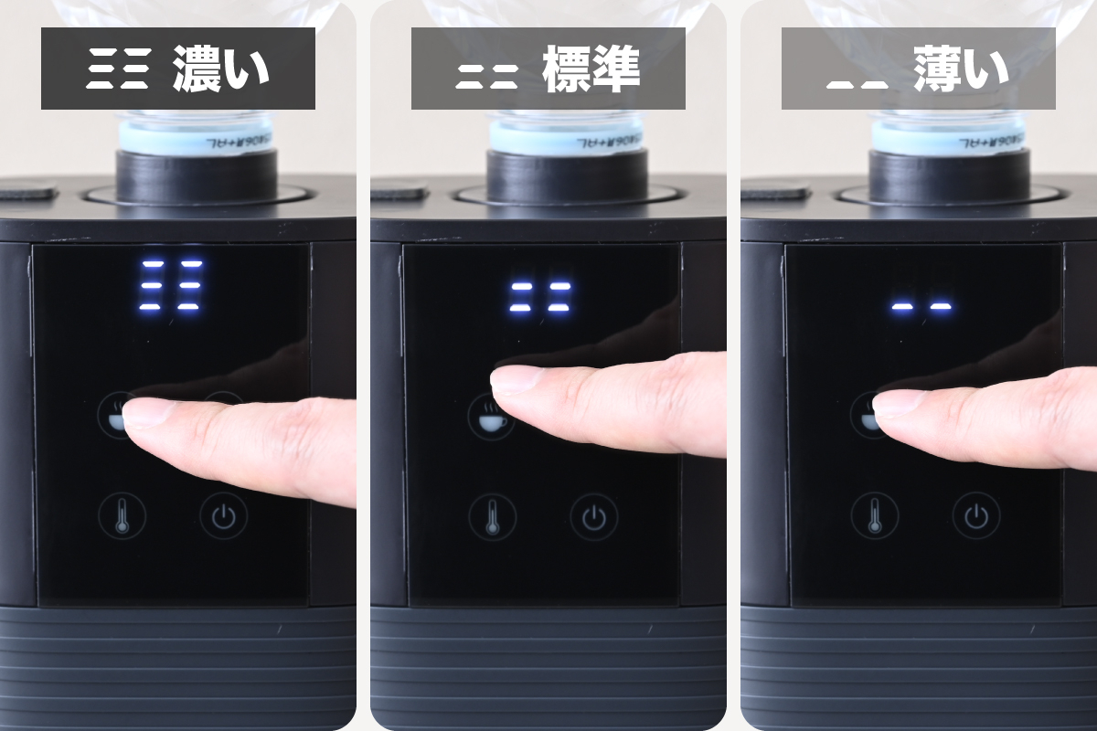 濃度は、濃い・標準・薄いの3段階で設定できます。