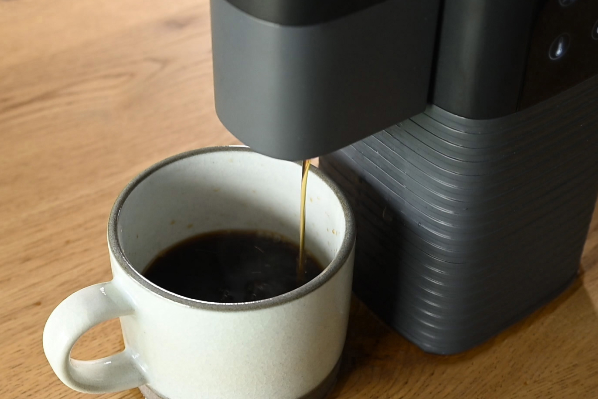濃度と温度を設定して給湯スイッチを押すと、コーヒーまたはお茶がポットからそのまま注がれます。約60秒で淹れたてのお茶やコーヒーをお楽しみいただけます 。