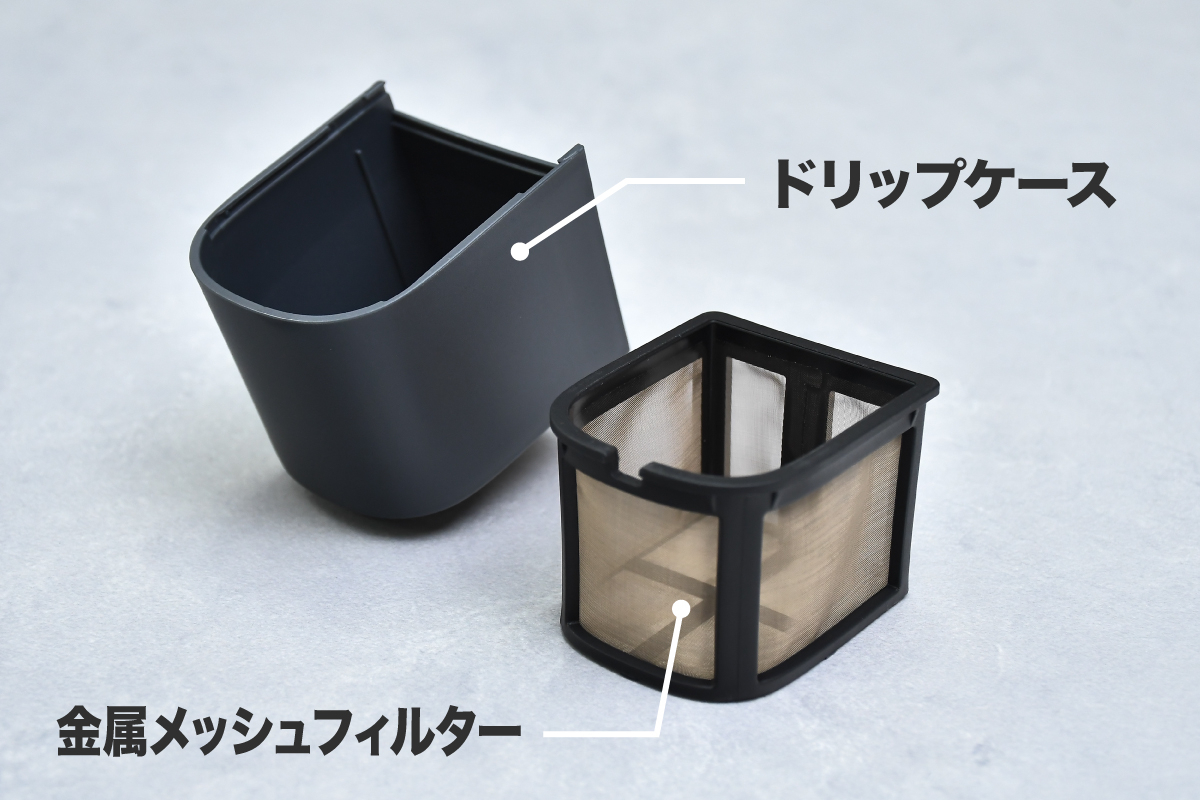 付属しているドリッパーは、内部の金属メッシュフィルターにより、ペーパーフィルター不要で、コーヒー粉や茶葉が入れられます。