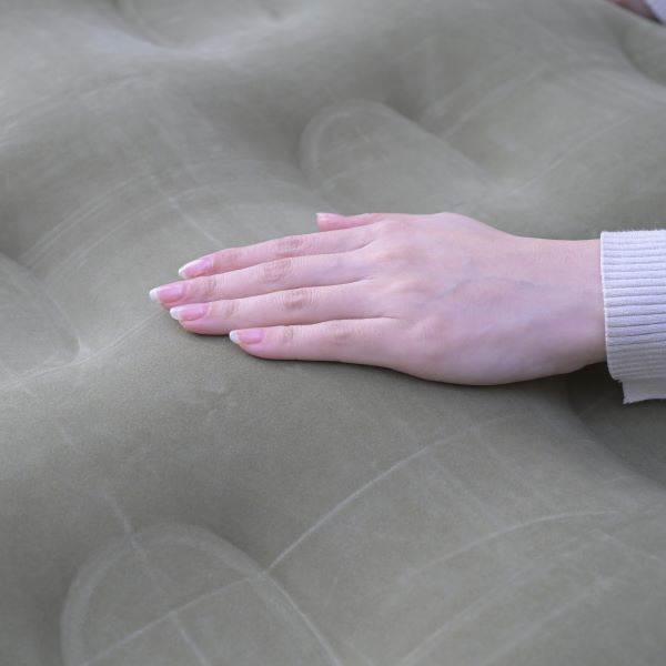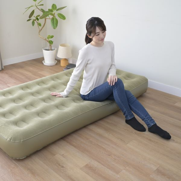 | 仕様 | ●ポンプ付きでいつでもどこでもすぐ使える ●押しても引いても空気が入る、ダブルアクション仕様のポンプ ●クリアコイルを採用し、より安定した寝心地を実現 ●肌触りのよいベロア調仕上げ ●空気を抜けばコンパクトに収納可能。防災や急な来客や荷物がかさばるキャンプなどでも大活躍 |