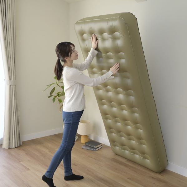 空気を抜けばコンパクトに収納。防災や急な来客、荷物がかさばるキャンプなどでも大活躍
