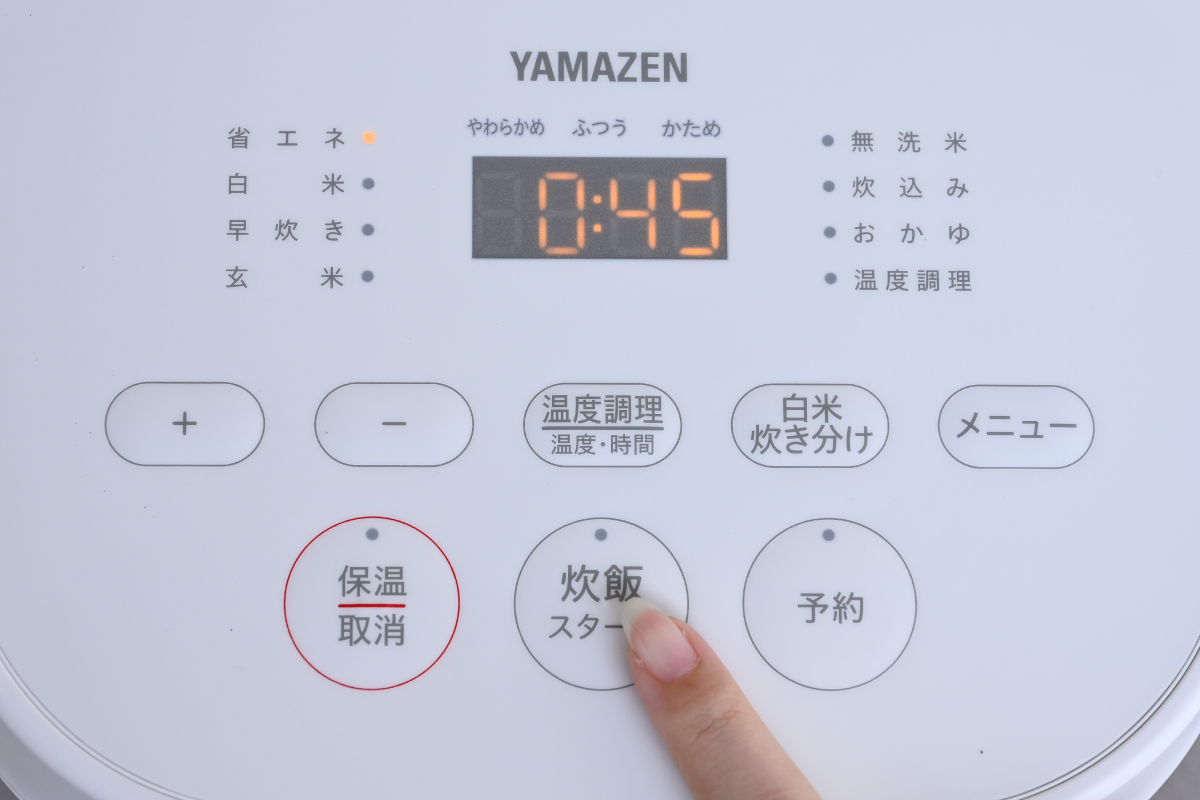「省エネ」「白米」「早炊き」「玄米」「無洗米」「炊込み」「おかゆ」の炊飯メニューを搭載しており、「白米」は3種類の炊き加減も設定することができます。また、温度と時間を設定して煮込みや低温調理ができる「温度調理モード」も搭載しています。