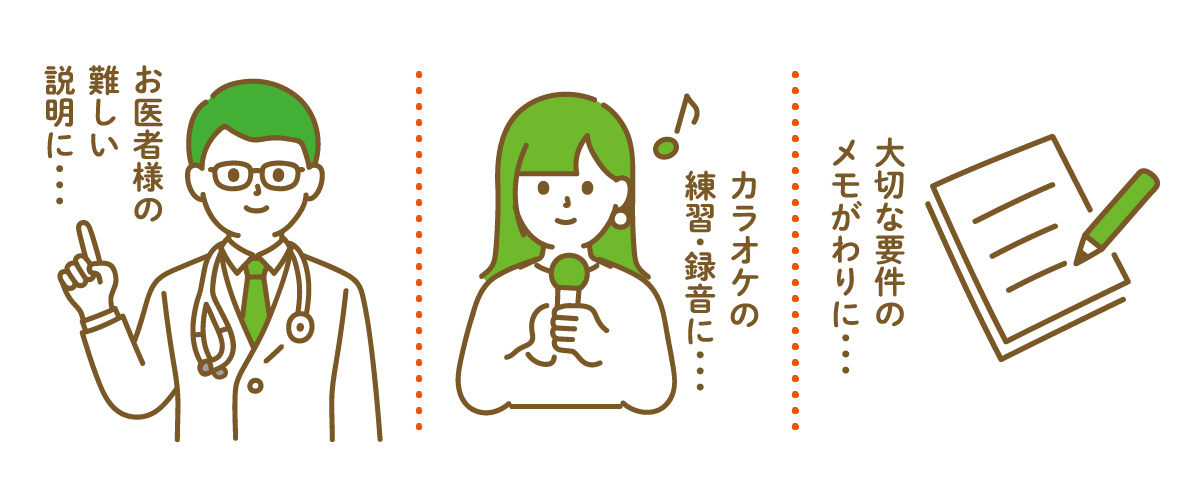 お医者様の難しい説明に、カラオケや習いごとの練習・録音に、大切な要件のメモ代わりに