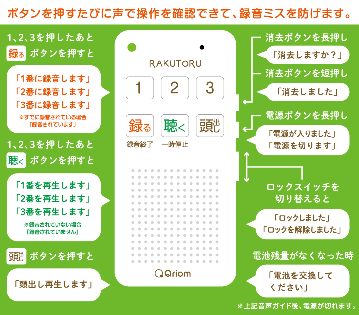録音操作を声でお知らせする「音声ガイド機能」で操作がさらにカンタンに!