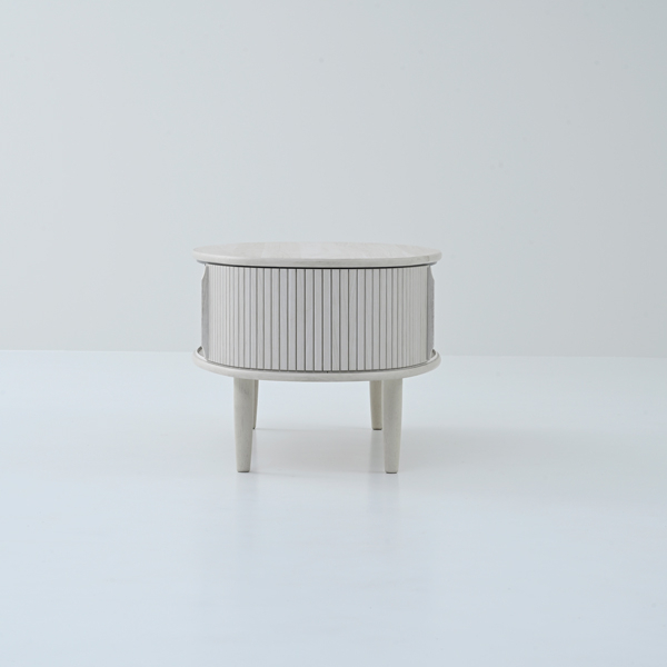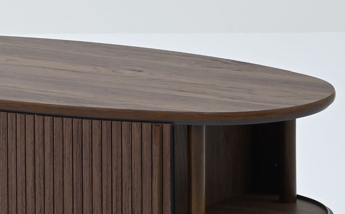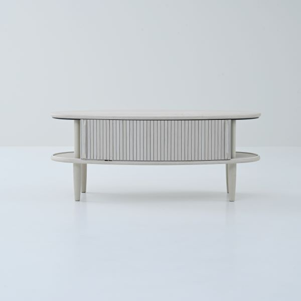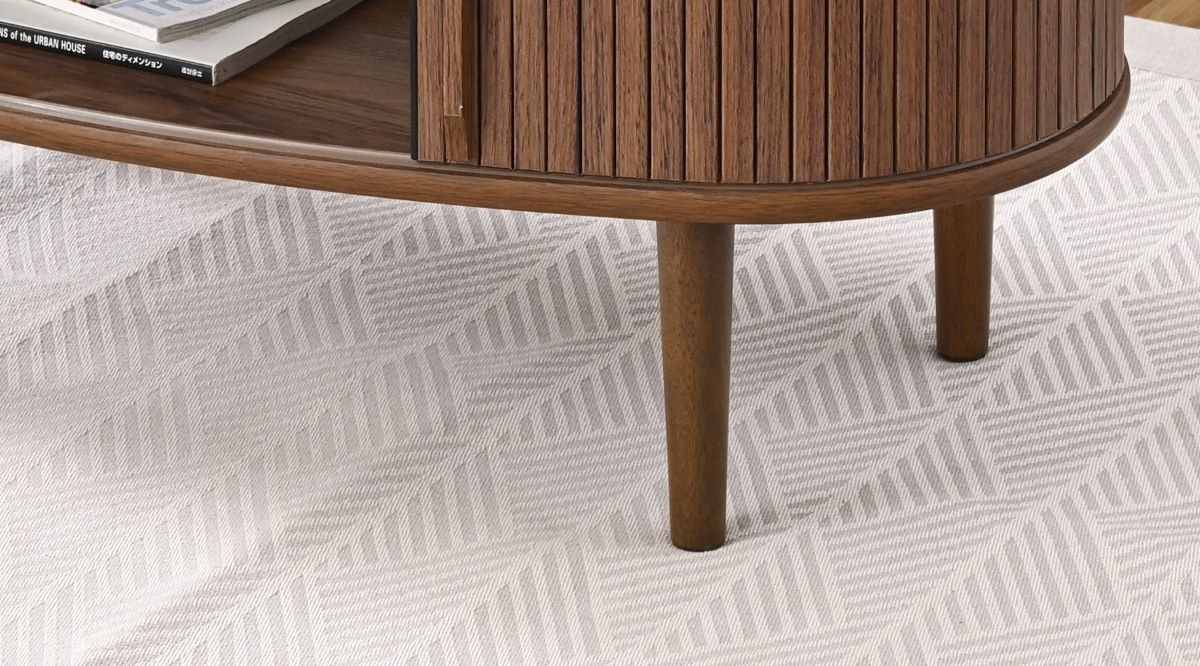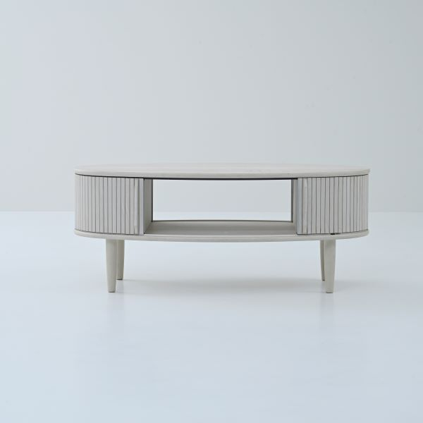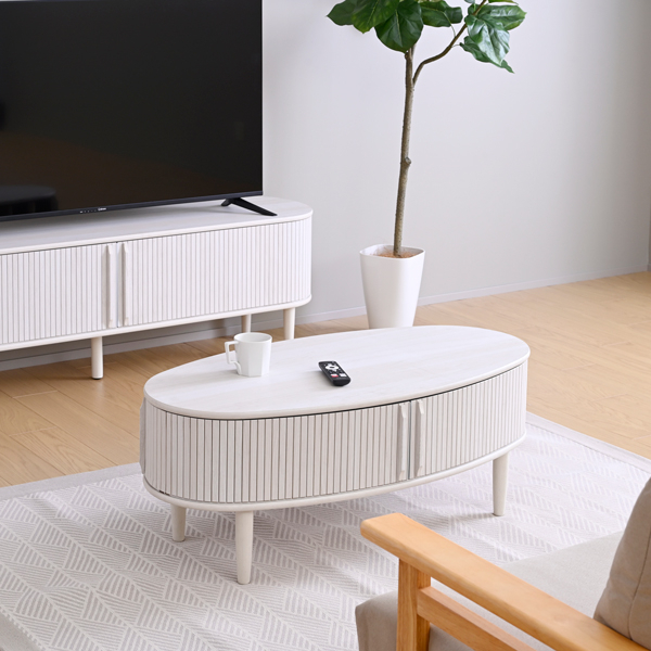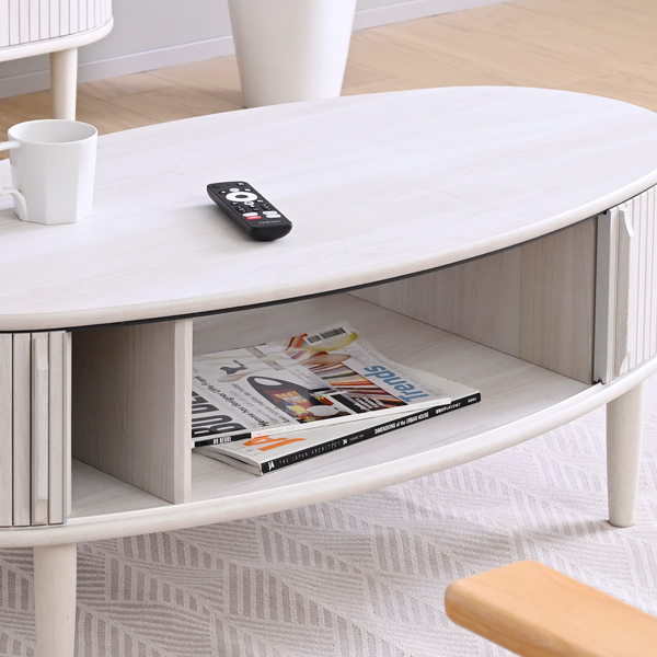 ジャバラ式の引き戸で、収納もできる楕円形のローテーブルです♪