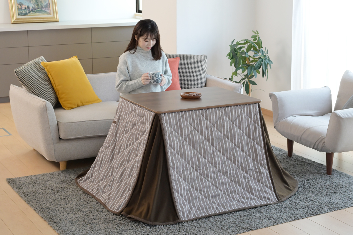 GAH-F80602-FSET(WBR)/GAH-F105602-FSET(WBR)/GAH-F120702-FSET(WBR)/高さが2段階調節可能なリビングこたつ&こたつ布団セットです。