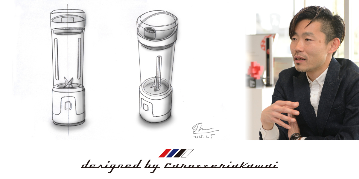 世界のトップ100デザインスタジオに選定された、カロッツェリア・カワイ(株)と協業して開発。「スポーティー&アクティブとジャーマンデザインの融合」をコンセプトとし、フィットネスや筋トレを日常的に行うユーザーをメインターゲットにしつつ、キッチンでの普段使いにも適したデザインにこだわりました。上質感と、片手で持ちやすい形状など、スポーティーさを融合させたタンブラーミキサーです。