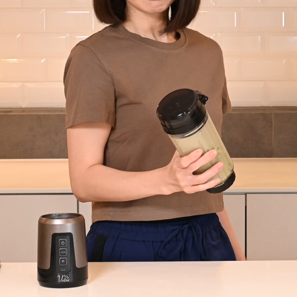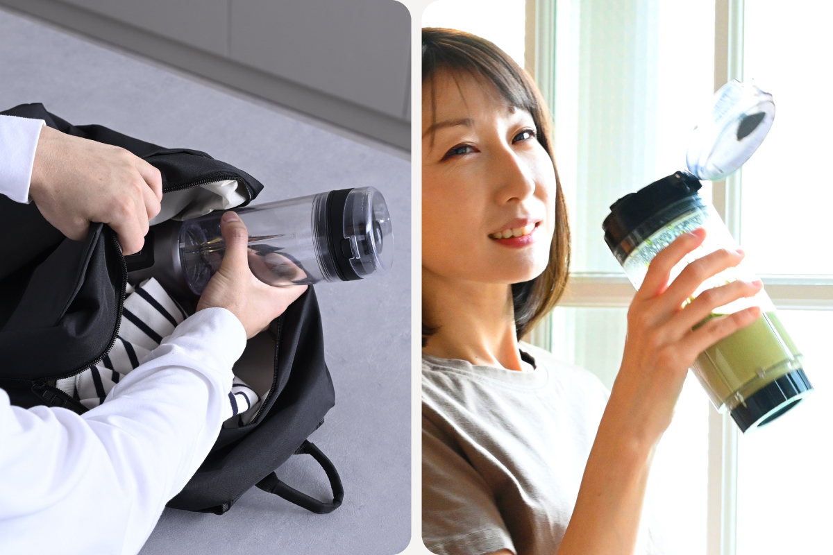 外出先でも使える充電式のコードレスタンブラーミキサーです。本体からボトル部分を取り外すことでタンブラーとして持ち運べます。
