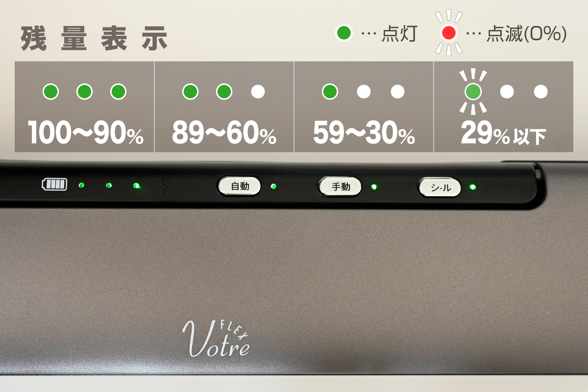電源を入れると、電池残量に応じてランプが点灯、点滅します。