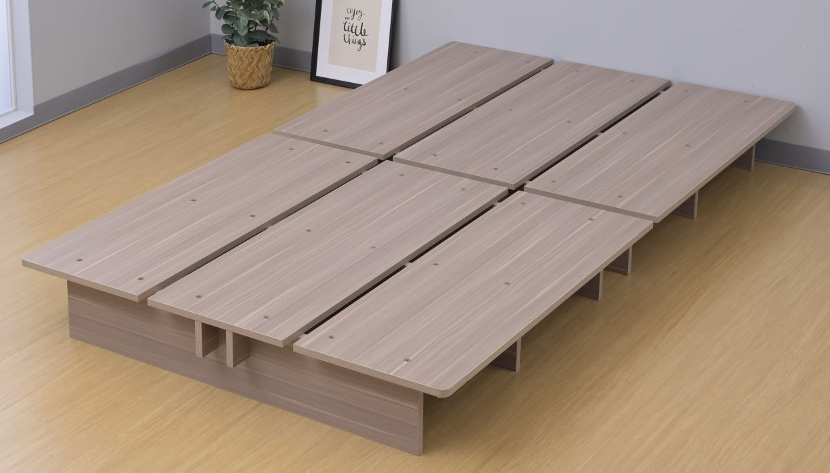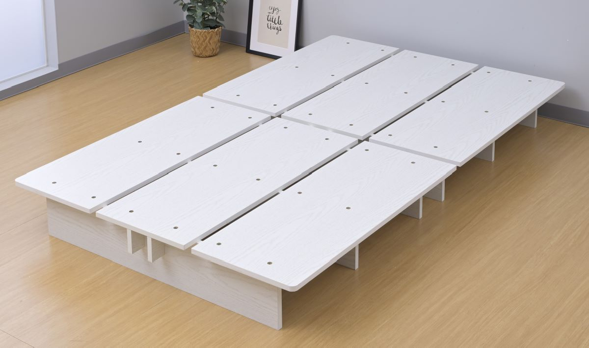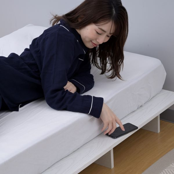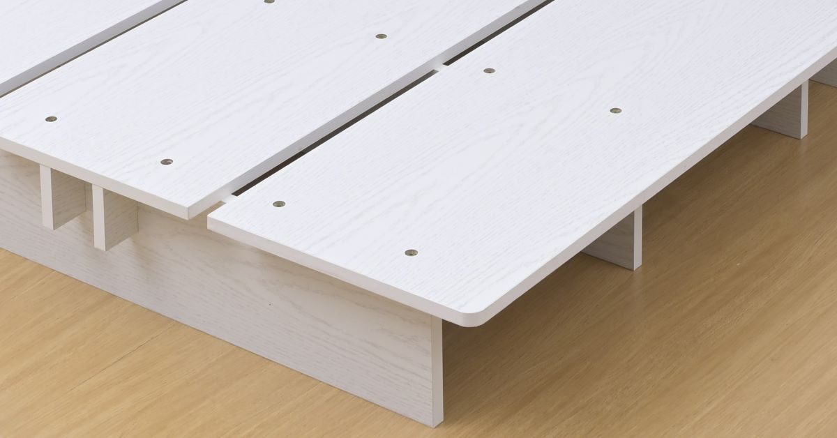 | 仕様 | ●2梱包でとても重たい荷姿で玄関先までのお届けとなります。搬入、組み立て、設置はお二人以上での作業がおすすめです。 ●プラスドライバーをご用意ください。六角レンチは付属あり。 ●お部屋を広く見せる、圧迫感のないロータイプのベッドフレーム ●床板が長く、マットレスを置いても余白が生まれ、サイドテーブルのように役に立つステージのような形 ●ロボット掃除機も入ってベッド下の掃除もしやすい、床下貫通設計 ●ベッド下には衣装ケースも置いて収納スペースとしても活躍 ●四隅の角度は丸みをつけたやさしいデザイン ●湿気や傷に強い、メラミン樹脂化粧の素材繊維板を使用 ●すのこ同士の隙間を設けることで湿気の逃げ道を確保 通気性を良くすることで快適な睡眠をサポート ●接地面用の保護フェルト付属 ●ベッド下中央部(貫通部)高さ: 10.5cm ※ロボット掃除機は当社実施ベースによるもので、機種により対応可否が発生します。 ●静止耐荷重: シングル・セミダブルマットレス利用時で200kg、ダブルマットレス利用時で300kg(耐荷重は、保証値ではございません。) ※本製品は最大荷重試験の7000N(約700Kg)をクリアした商品です。当社では安全を考慮し、本商品はシングルベッド利用時は耐荷重200Kg、ダブルベッド利用時は耐荷重300kgに設定しております。 ▼シングル用 ●床面サイズ: 幅120 長さ195cm ※セミダブルマットレス利用時は、床面の余白はございません。 ●ベッド下サイズ: 高さ19.5 幅39.5 奥行54.5cm ●すのこ板1枚あたりサイズ: 幅38 長さ96 厚み1.8cm ▼セミダブル用 ●床面サイズ: 幅140 長さ195cm ※ダブルマットレス利用時は、床面の余白はございません。 ●ベッド下サイズ: 高さ19.5 幅39.5 奥行64.5cm ●すのこ板1枚あたりサイズ: 幅32.6 長さ96 厚み1.8cm |