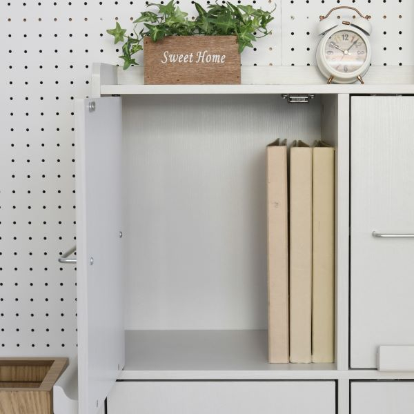 扉付きだから飾ったり隠したり、さまざまな収納を1台で実現できます。