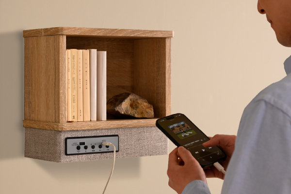 壁に取り付けることで、床面をすっきり保ちながらリビングや寝室など場所を選ばずに設置できます。限られた居住空間でも壁面を活用して音楽を楽しめます。