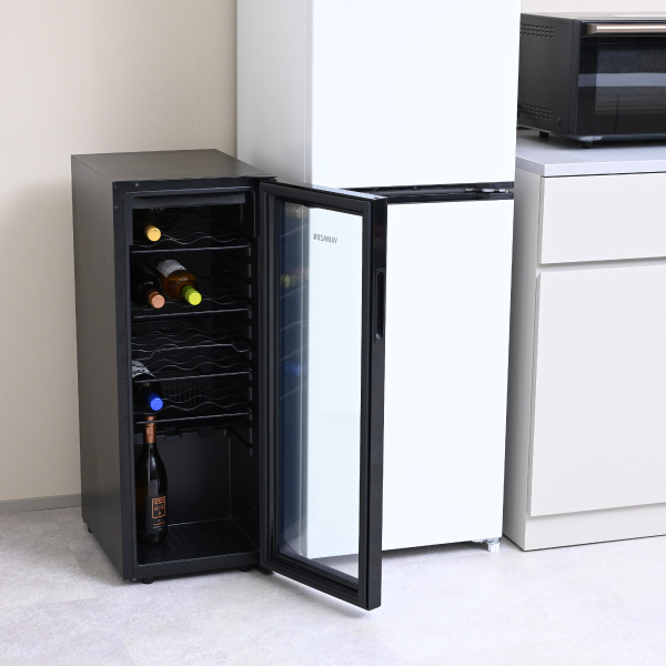 5℃から20℃の間で温度調整可能なコンプレッサー式のワインセラーです。2サイズ (18本 / 24本収納) からお選びいただけます。