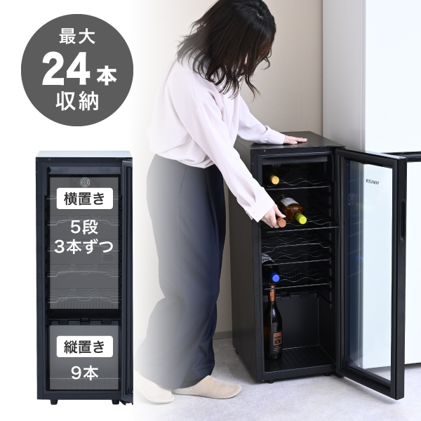 | 収納本数(ワインボトル) | 18本 (3棚) | 24本 (5棚) |