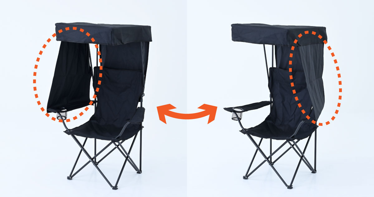 天面・サイドシェード付きで直射日光を大幅に軽減!行楽やイベント、スポーツ観戦、公園、作業現場などでの日よけチェアとしておすすめです。