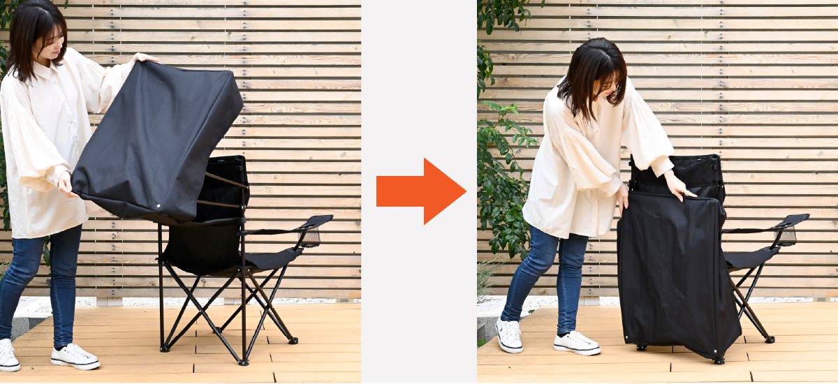 天面を折りたたんで、通常のチェアとしても使えます。