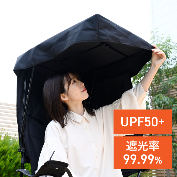 天面・サイドシェード付きで直射日光を大幅に軽減!UPF50+、遮光率99.99%の高い遮光性を備えた生地を採用しています。