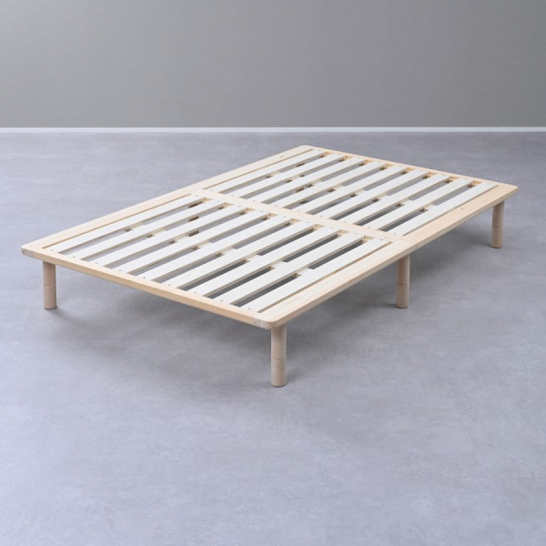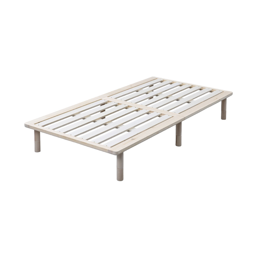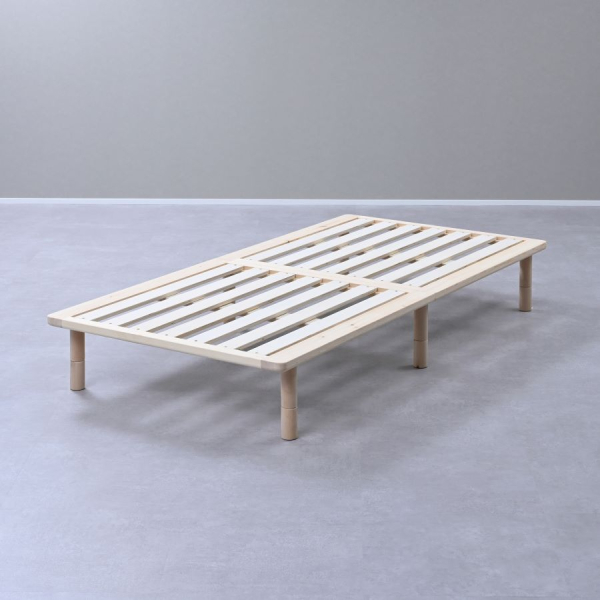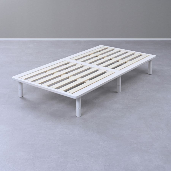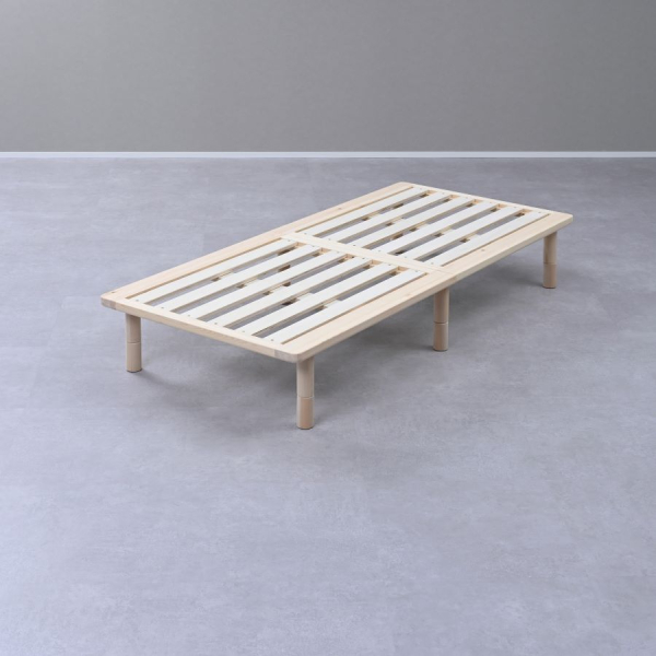 脚を取り付けるだけの簡単組み立て。お好みに合わせて高さを4段階で変更できます。通気性の良いすのこの床板でムレやカビ対策に。