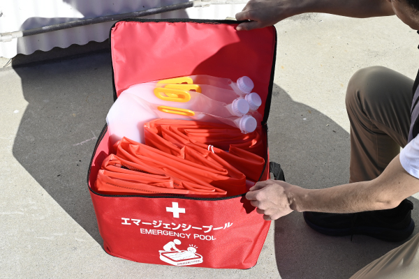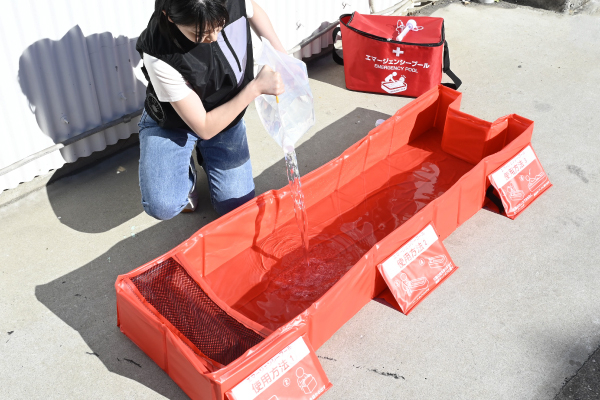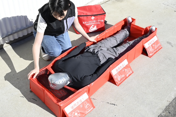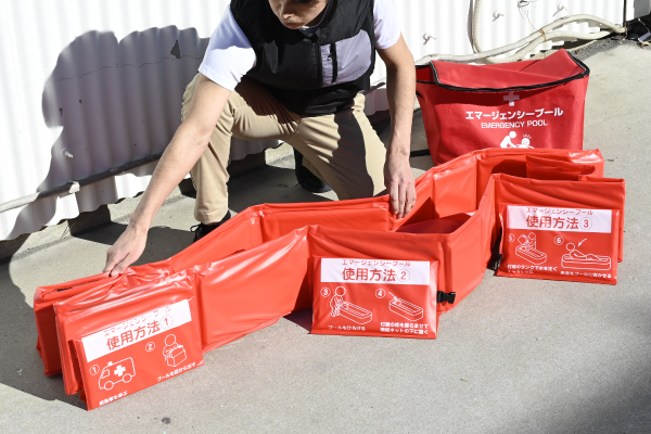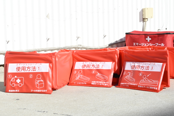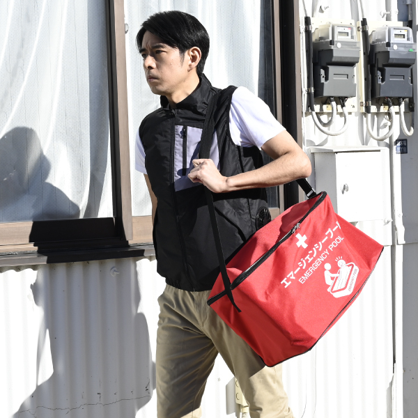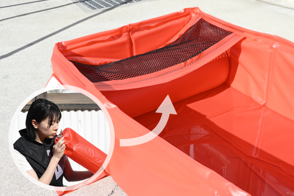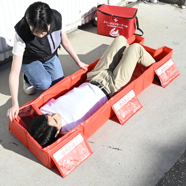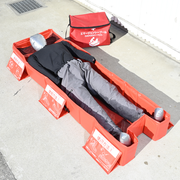 熱中症が疑われる際に、身体を冷却するための緊急用簡易プールです。約30秒で組立可能で、水を入れてご使用いただけます。