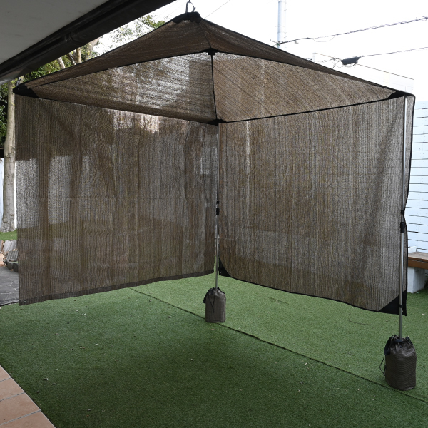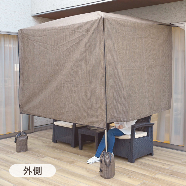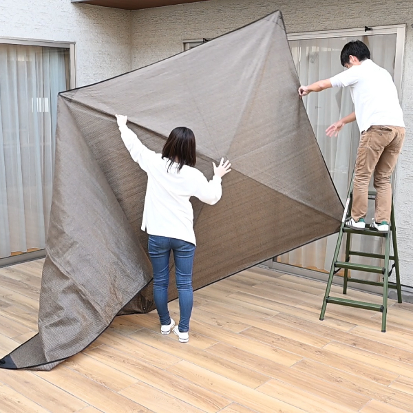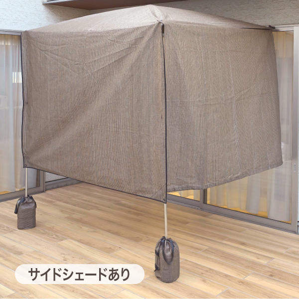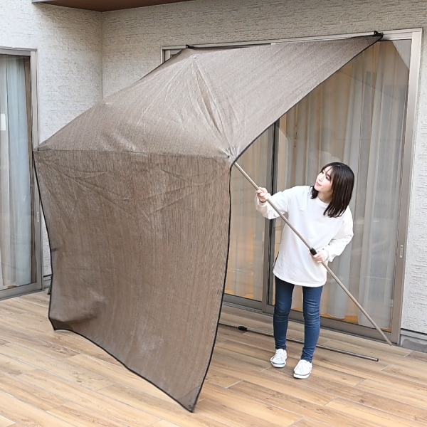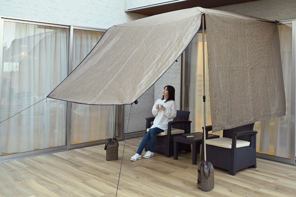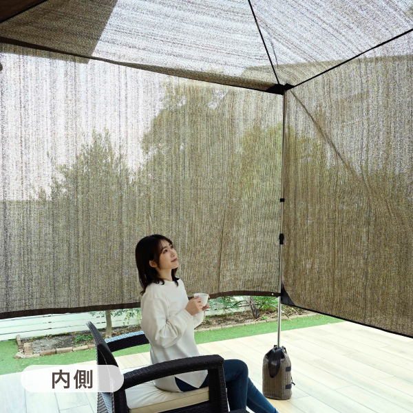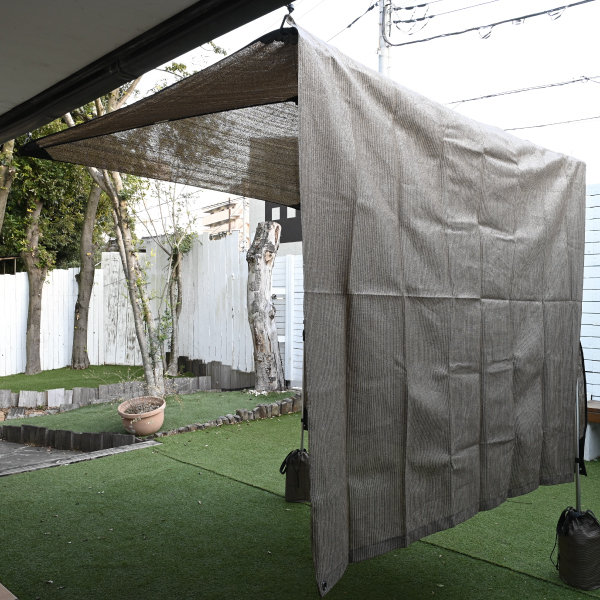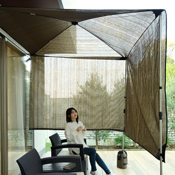 シェードの素材には、日差しを遮りながらも風を通しやすい生地を採用。シェード内に熱がこもりにくい設計です。プライバシーを守る目隠しとしても活躍します。