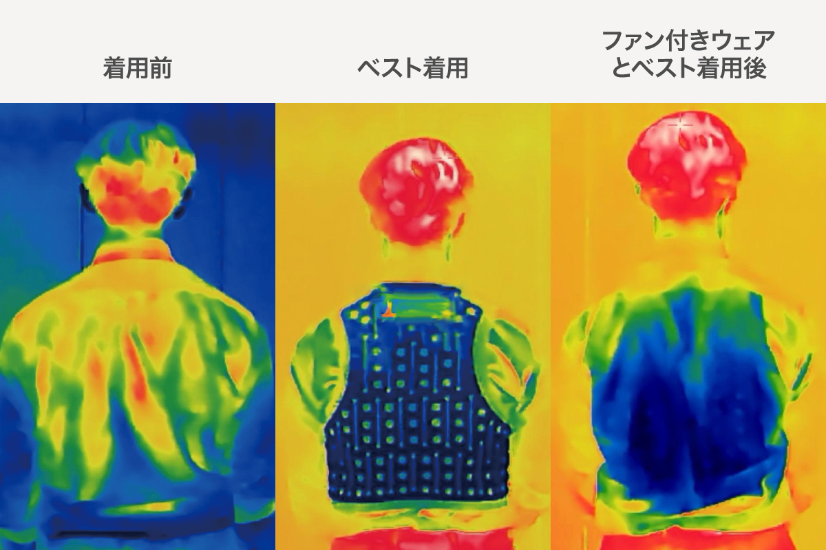ファン付きウェアのインナーとしても使用でき、暑さ対策アイテムとして幅広いシーンで活用できます。
