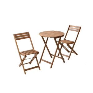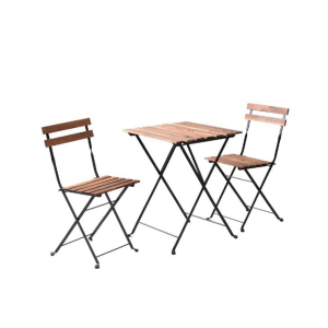 アカシア天然木とスチールの組み合わせがおしゃれなガーデンテーブル&チェアの3点セットです♪